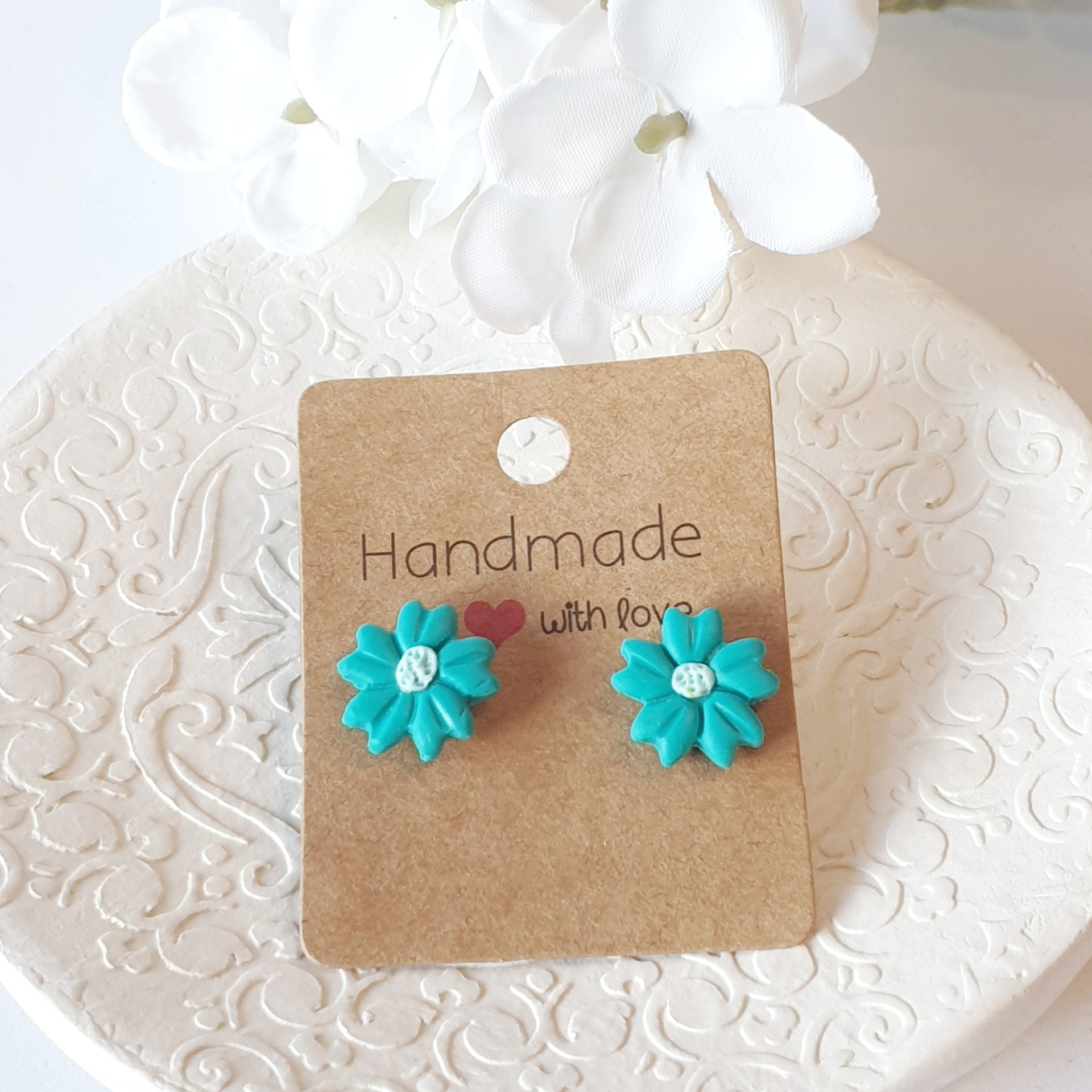 Brincos em formato de flor. Feitos à mão com massa Fimo. Leves e confortáveis para o uso diário.