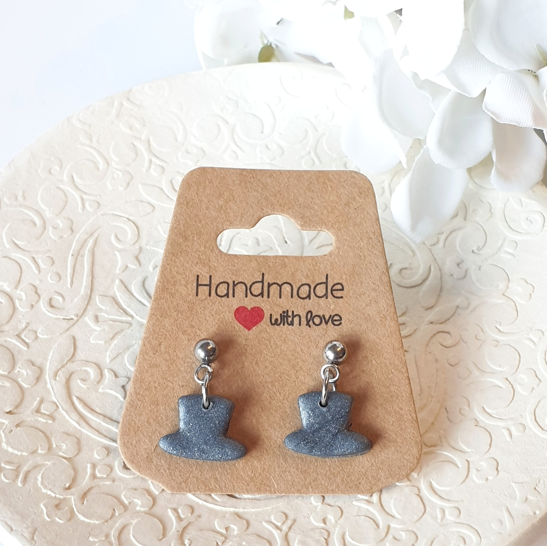 Brincos formato chapéu. Feitos à mão com massa Fimo. Leves e confortáveis para o uso diário.