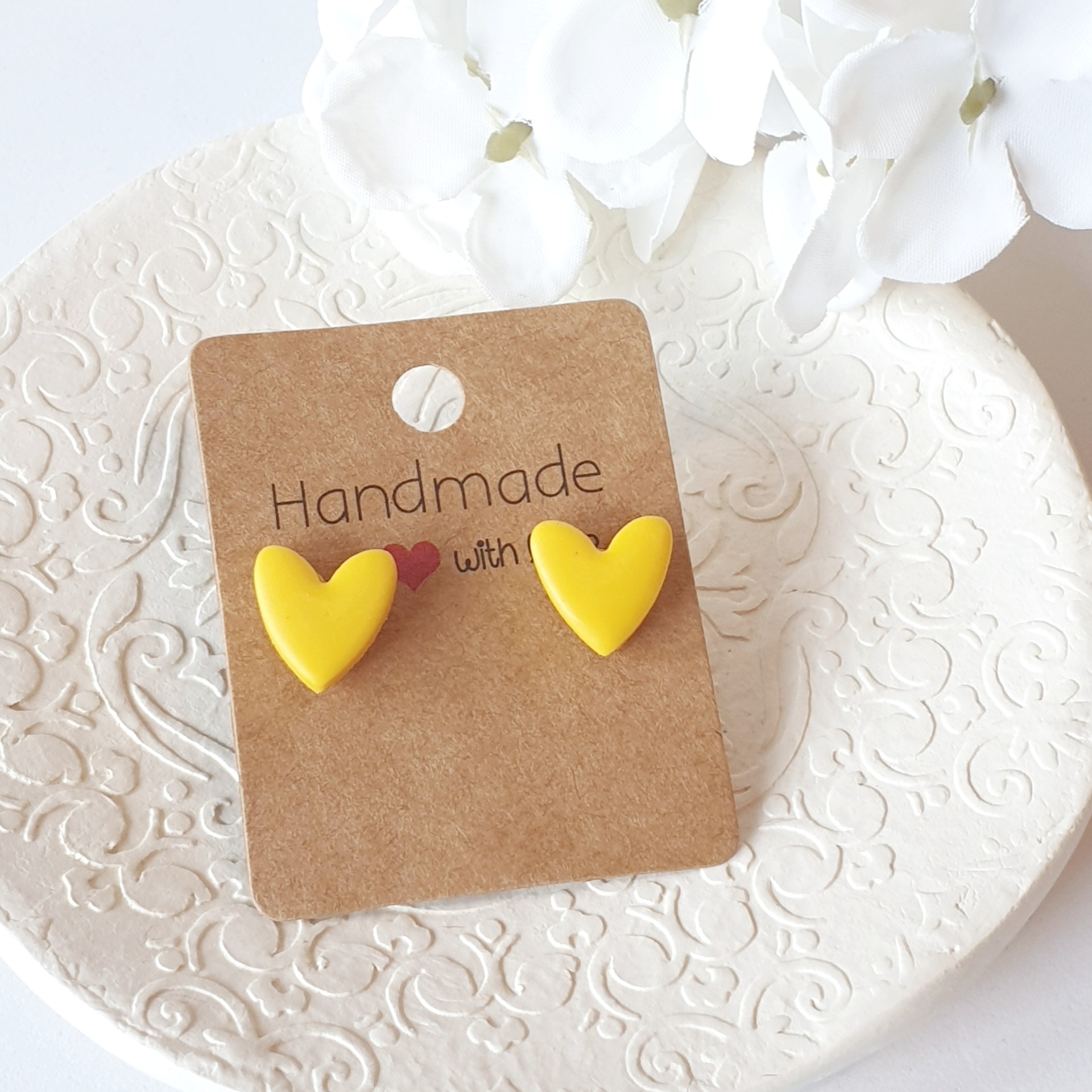 Brincos formato de coração. Feitos à mão com massa Fimo. Leves e confortáveis para o uso diário.
